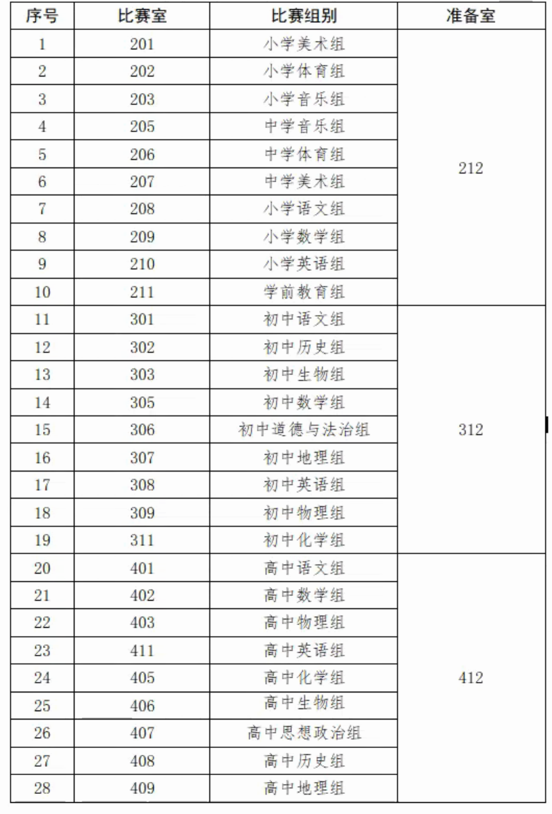 比赛安排在北区8号教学楼举行,具体如下表。